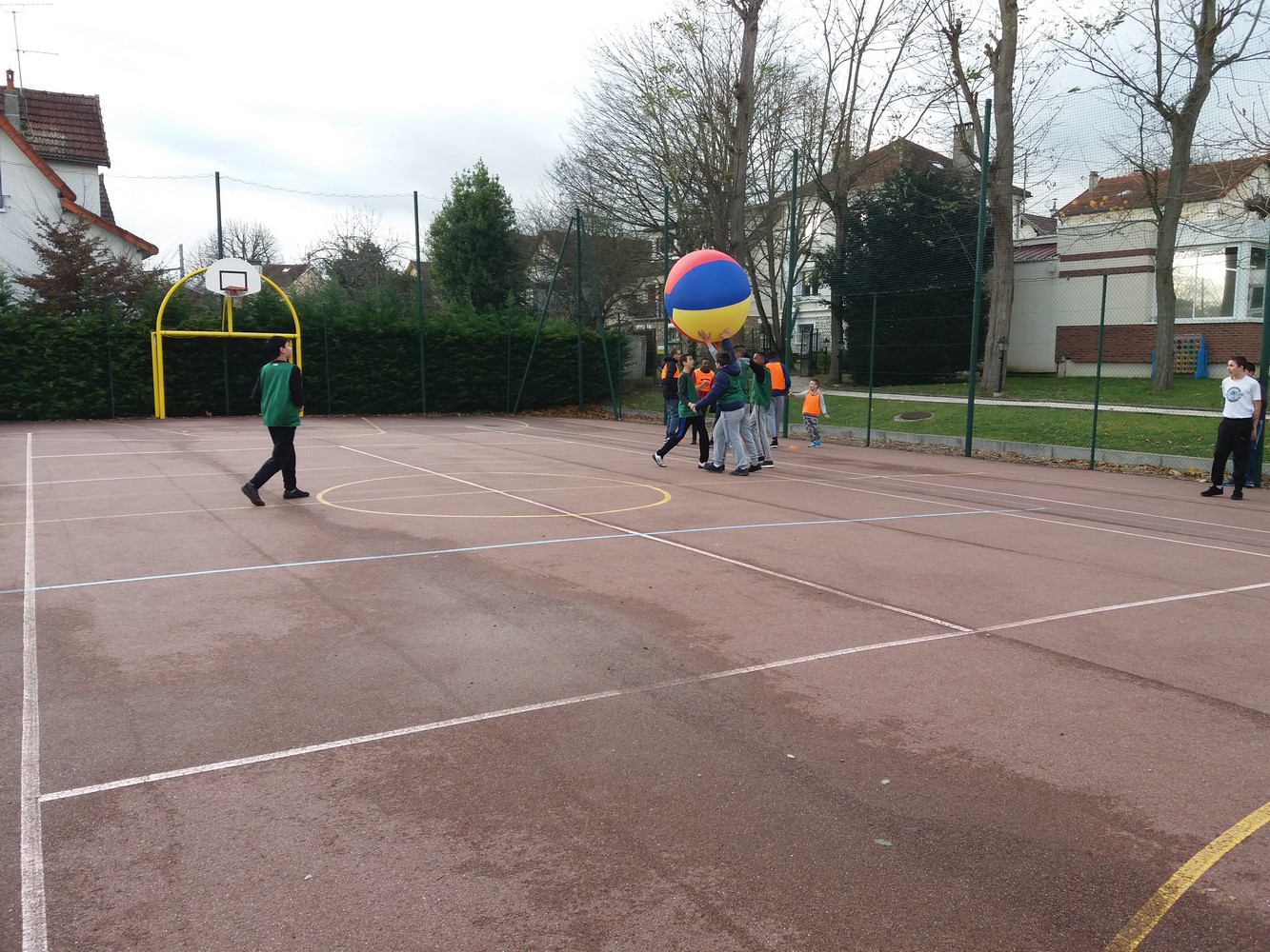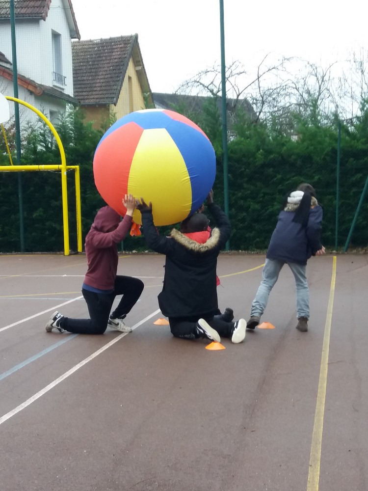 La pratique du kin-ball (jeu avec une grande balle). Le but étant d’attraper la balle avant qu’elle ne touche le sol.