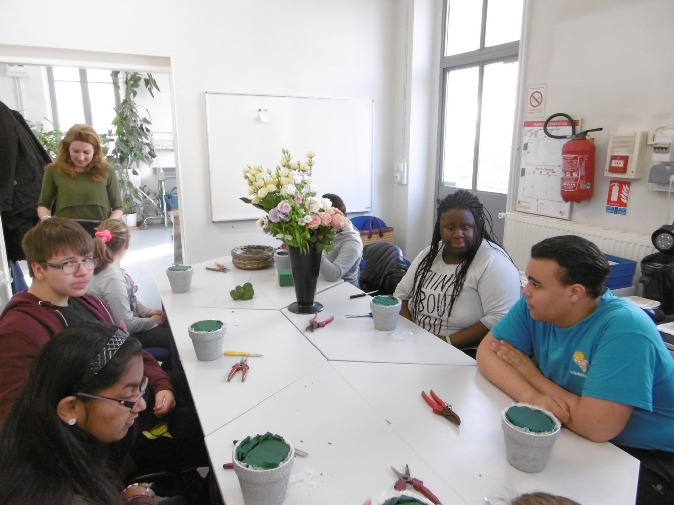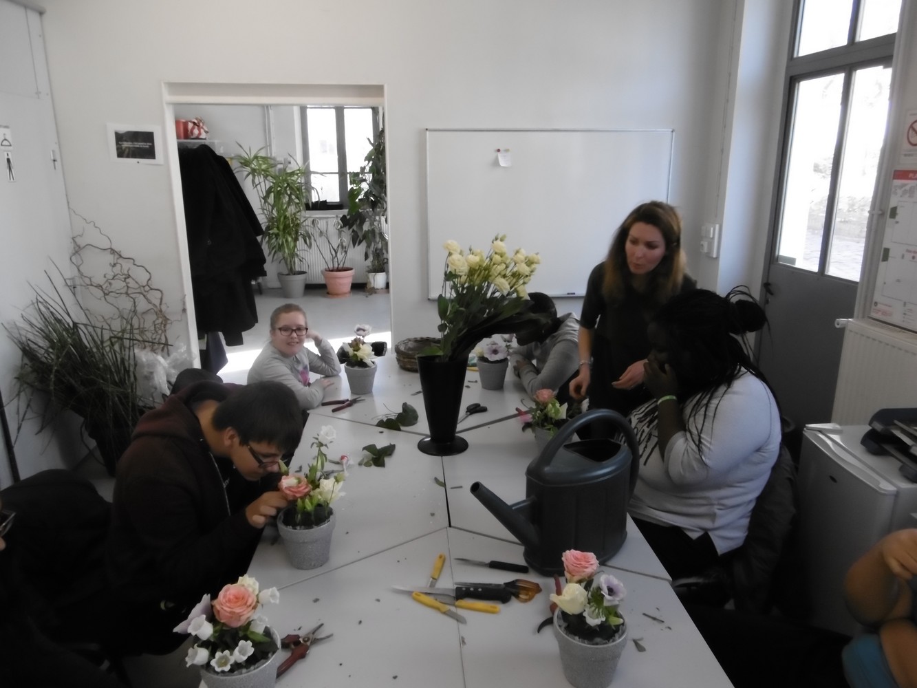 Au travers de la création florale, sont recherchés expression artistique, développement de l’imagination, notion de plaisir… Par le mélange de couleurs, de parfums, agrémentés de divers supports, les jeunes réalisent de magnifiques compositions.