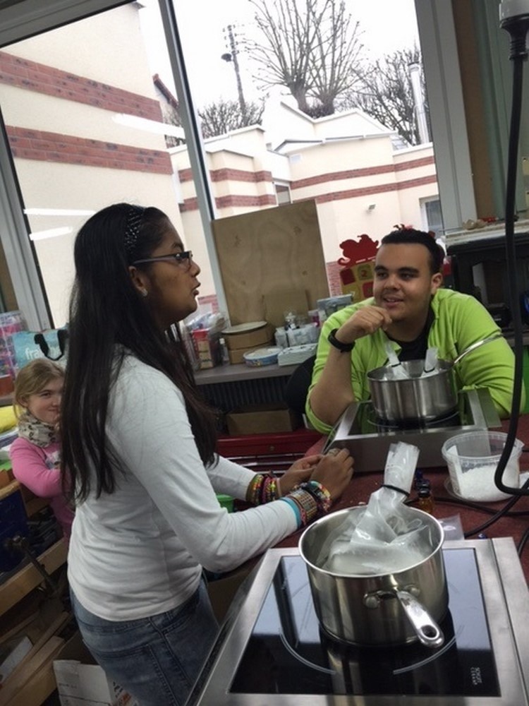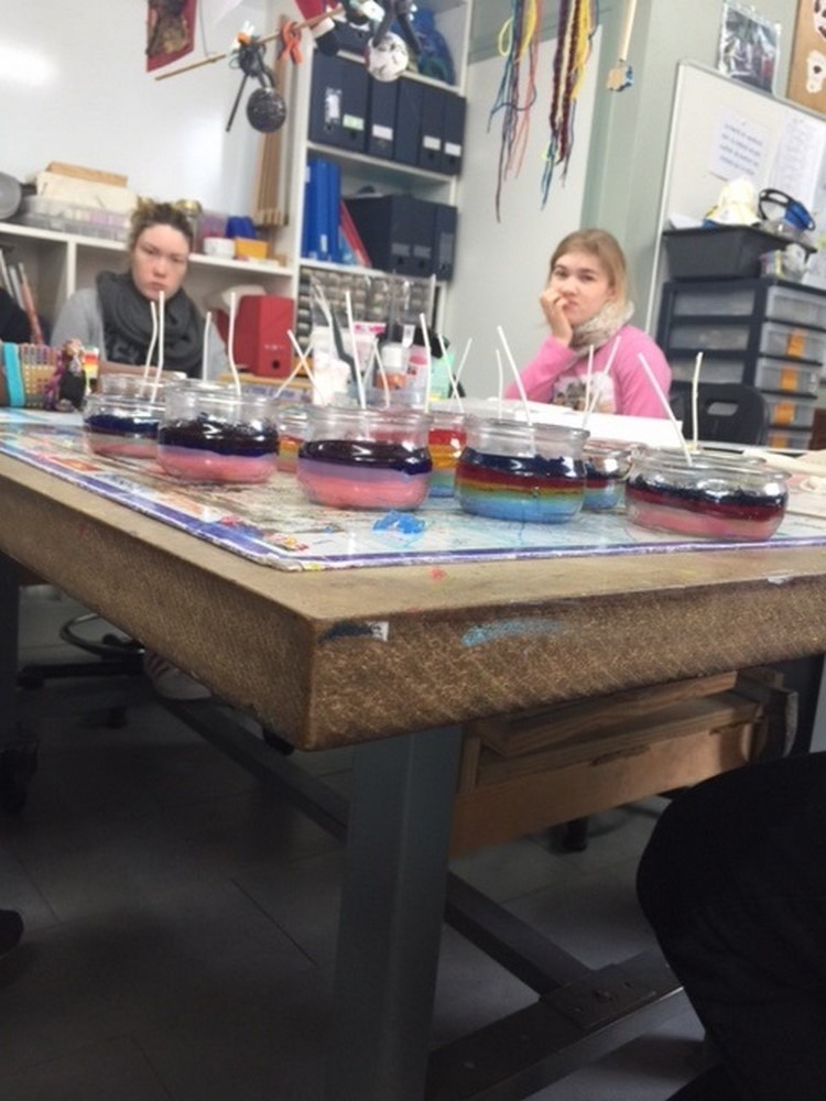 Durant une matinée les jeunes de l’atelier Blanchisserie et Bois et Décoration se sont réunis pour réaliser de très belles bougies.