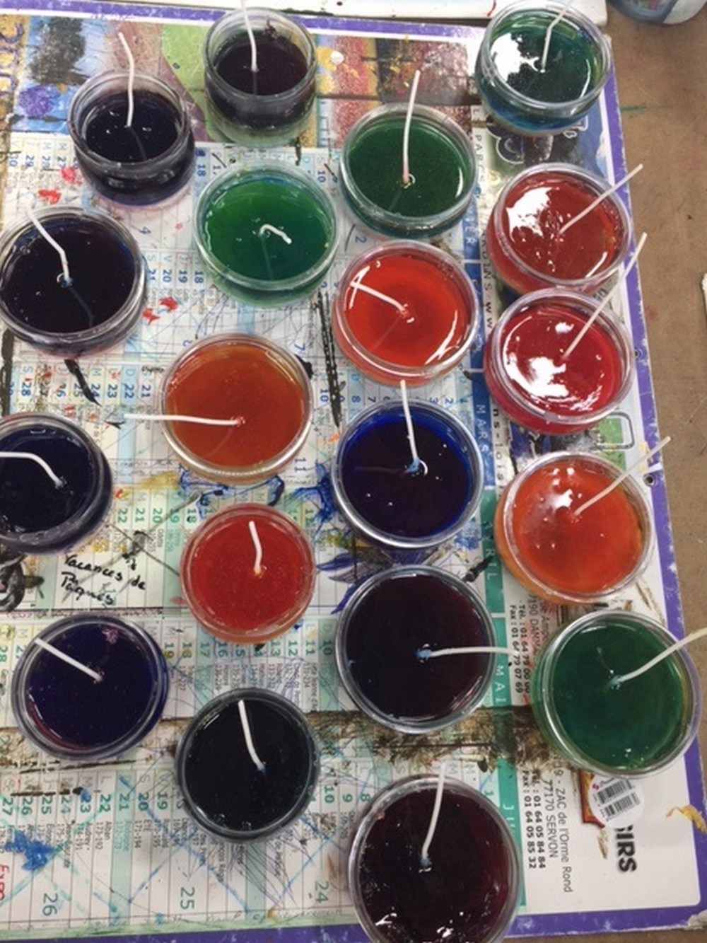 Il a fallu dans un premier temps faire fondre la cire et le gel, ensuite des colorants et des parfums ont été rajoutés.