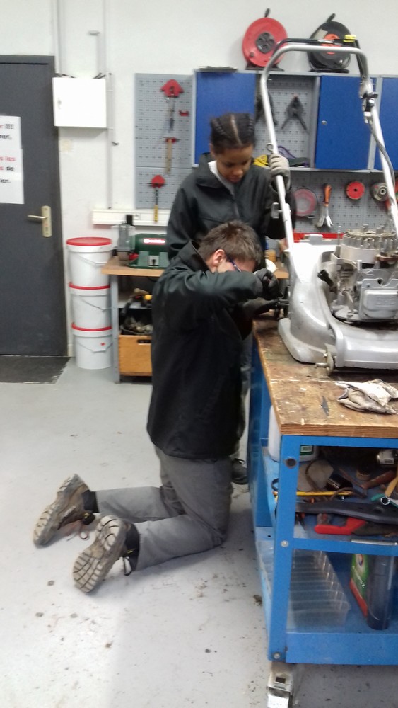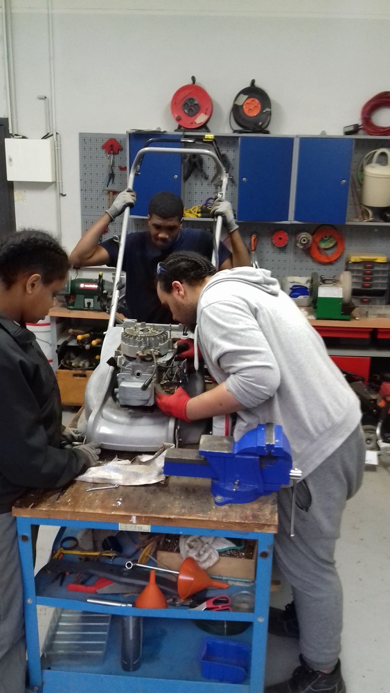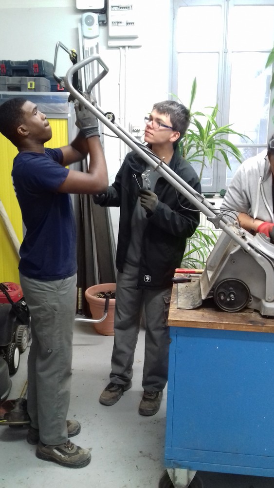 Cet atelier, en complément de l’atelier espaces-verts, a pour objectif d’assurer un entretien courant du matériel paysager (tondeuses, tailles haies, souffleurs, …). Il permet également de faire un diagnostic pour en repérer le dysfonctionnement en observant l’état des pièces (usure, déformation, …), et est aussi l’occasion d’assurer l’entretien courant (vidanges, graissages, réglages, …). En parallèle l’entretien général du matériel fait également l’objet d’une révision annuelle par un prestataire qualifié.