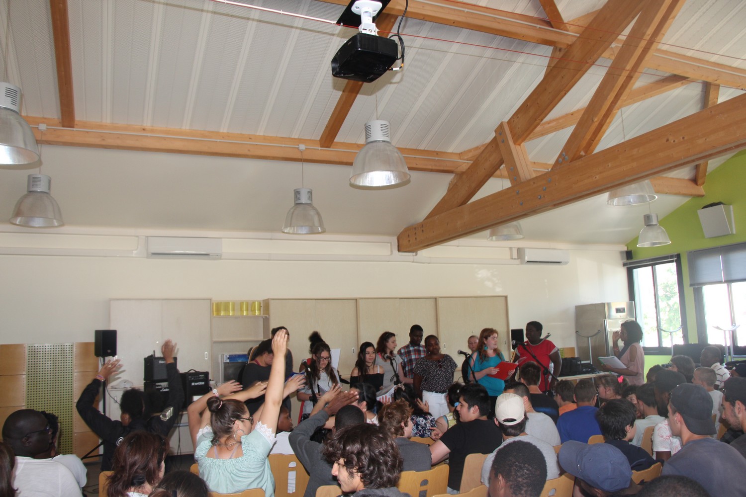 Après le repas des jeunes du SESSAD de l’Yerres et du SESSAD des Papillons Blancs ont enthousiasmé la salle du pôle restaurant avec plusieurs morceaux de musique. Avec autant de dynamisme, la chorale des jeunes de l’IME a poursuivi le spectacle qui s’est clôturé par une chorégraphie de Hip-Hop.