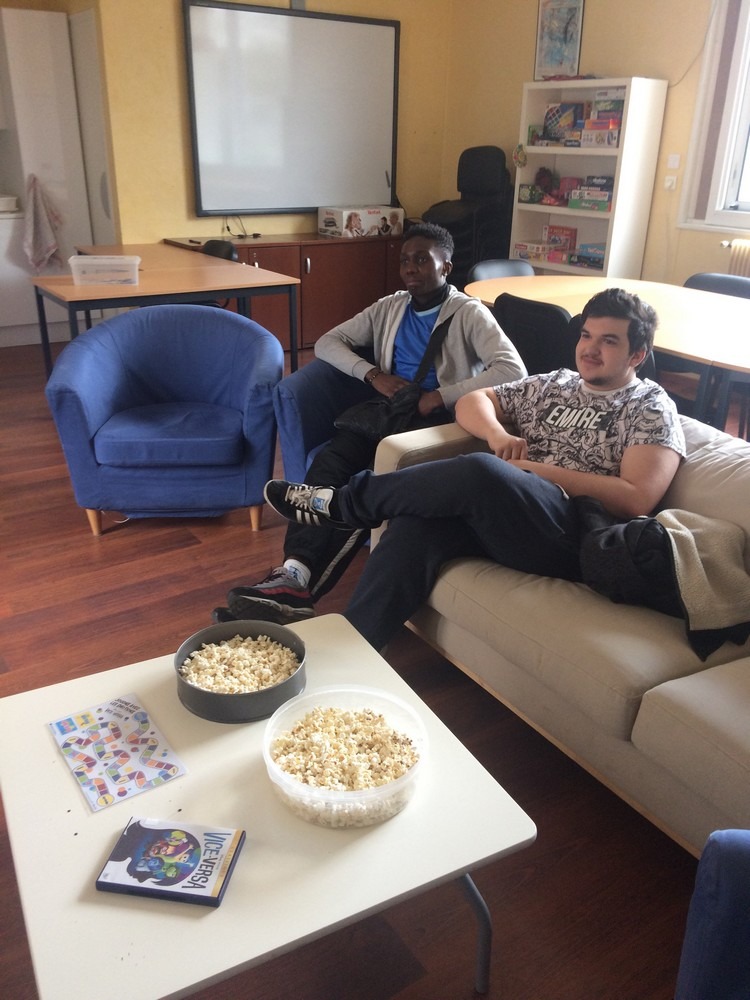 Régulièrement nous organisons des après-midi « ciné-débat », nous regardons alors un film, choisit en alternance par les jeunes ou les professionnels, accompagné de pop-corn. Ce mercredi, nous avons regardé le dessin animé « Vice-Versa » qui parle des émotions.