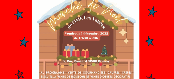 L’IME les vallées vous invite pour son marché de noël le vendredi 5 décembre 2025 à partir de 17h30