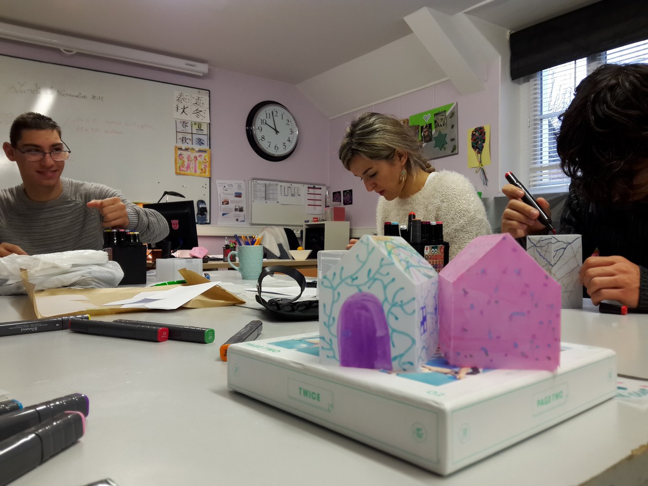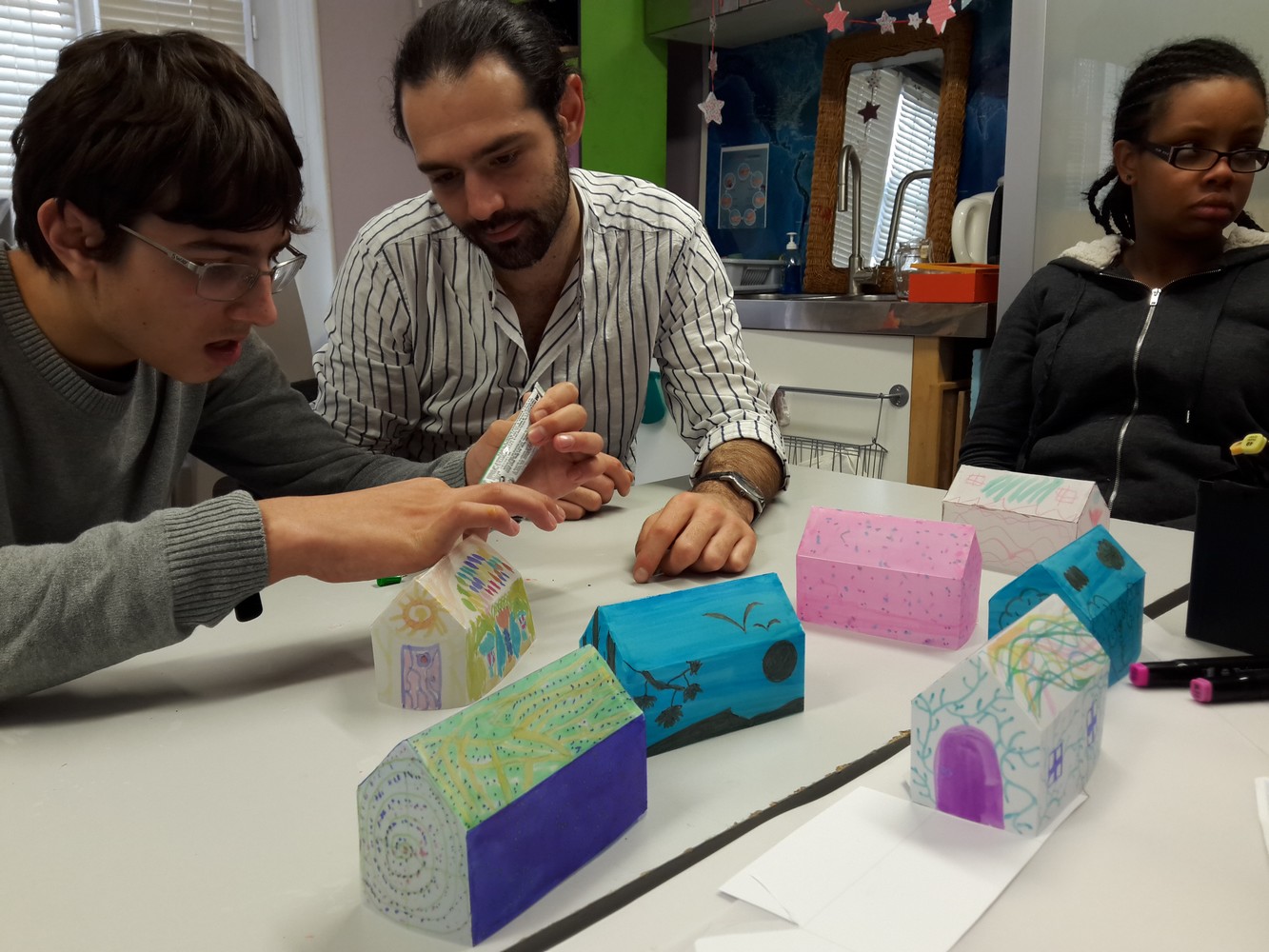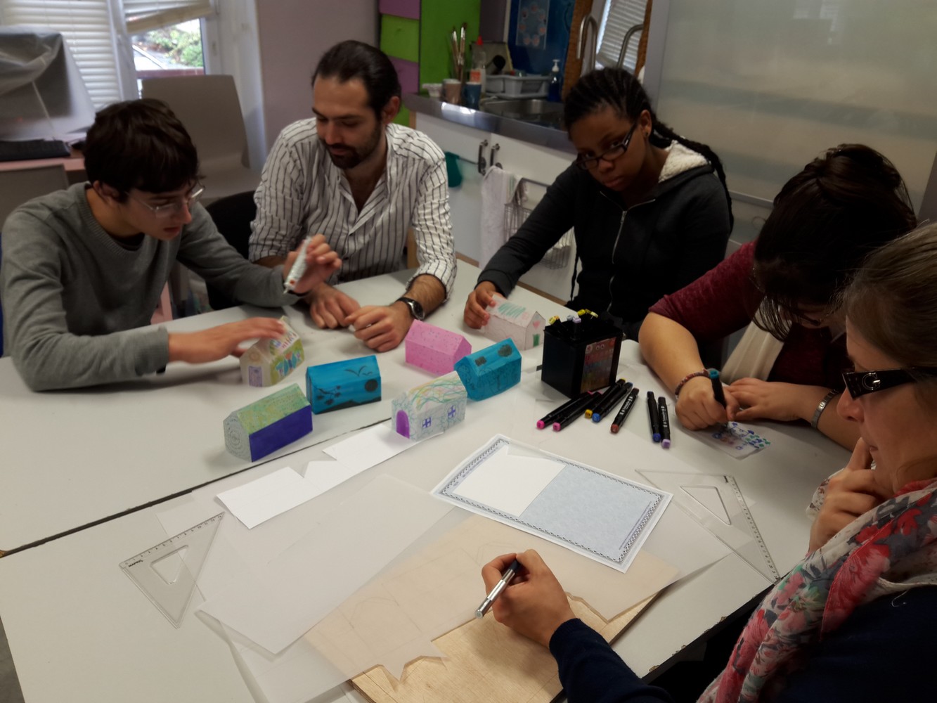 Deux groupes techniques ont réalisé de petites maisons lumineuses en calque, qui seront intégrées au décor du  marché de Noël le vendredi 08/12/2017 (plus d’info) et pour les journées portes ouvertes. Cette proposition , artistique, expressive et créative, fait partie de la préparation au spectacle de Judith Nab, « Ma maison, le reste du monde et ailleurs » qu’une douzaine de jeunes verront au printemps au Théâtre-Sénart.
