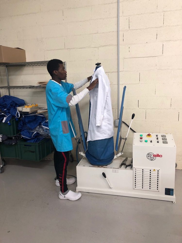 Accompagnés de leur éducatrice, cette période a permis aux jeunes, au contact des travailleurs de l’ESAT de découvrir l’utilisation du mannequin de finition et de se perfectionner au travers d’autres pratiques professionnelles tels que le pliage de linge pour des particuliers, le triage des matières pour le séchoir, la réception et le pliage des draps, …).