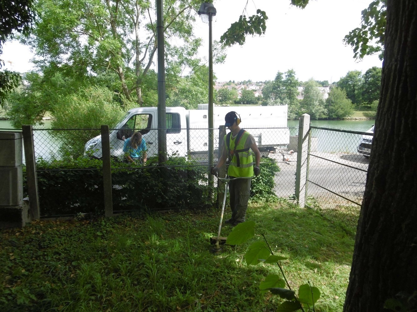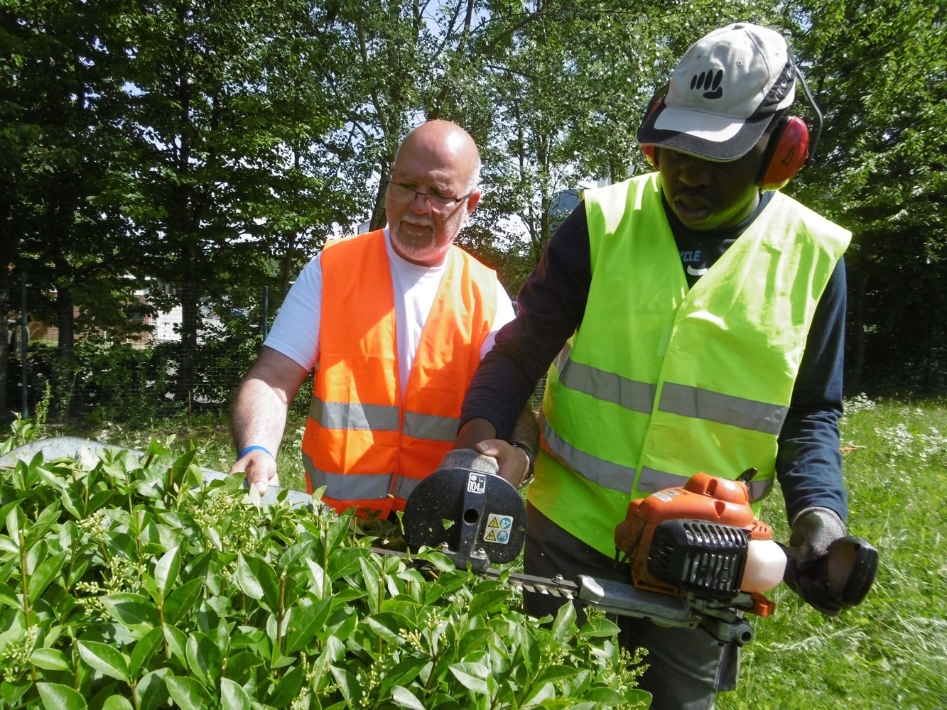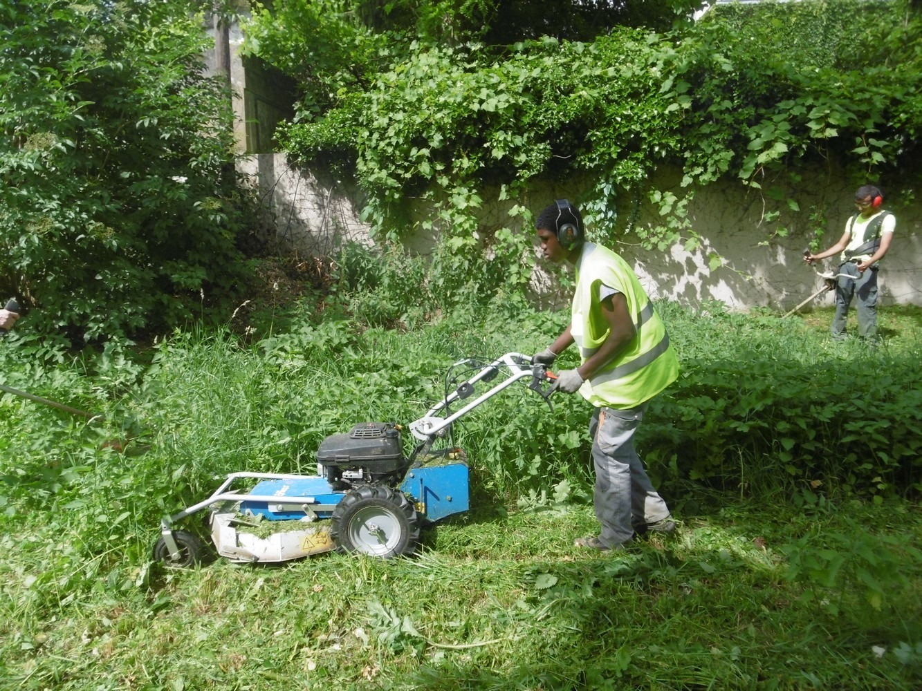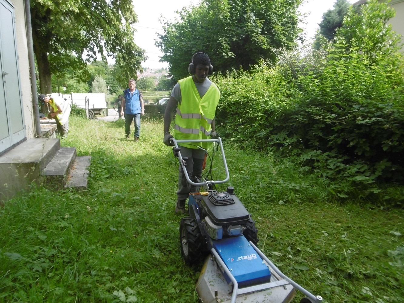 Tonte de la pelouse, débroussaillage, taille de haies, entretien du matériel, … les jeunes en situation de travail se familiarisent avec le monde professionnel.